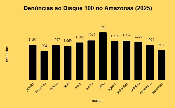 O balanço mostra uma alta de 4,5% em comparação com 2024, quando o estado contabilizou 13.194 denúncias. Com esses números, o Amazonas se consolida como o 12º estado brasileiro com mais registros no Disque 100, ocupando a liderança isolada entre todos os estados da Região Norte.