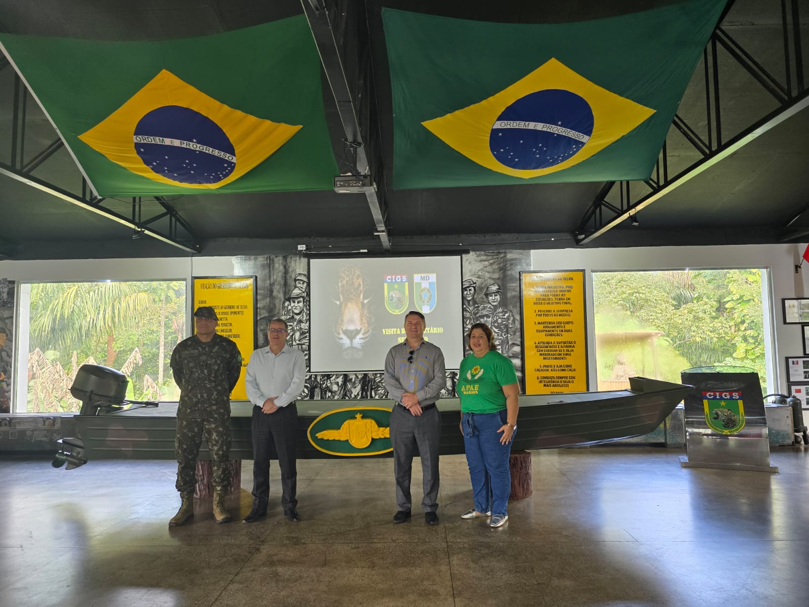 Na última quarta-feira, 9 de abril, a presidente da Apae Manaus, Ione Tôma, integrou uma comitiva que visitou o Centro de Instrução de Guerra na Selva (Cigs), localizado no bairro São Jorge, zona Oeste. A reunião teve o objetivo de alinhar metas e estruturar o início do projeto João do Pulo, uma iniciativa que promete integrar esforços entre a Apae e o Ministério da Defesa para ampliar as ações de inclusão social e apoio às famílias dos excepcionais.