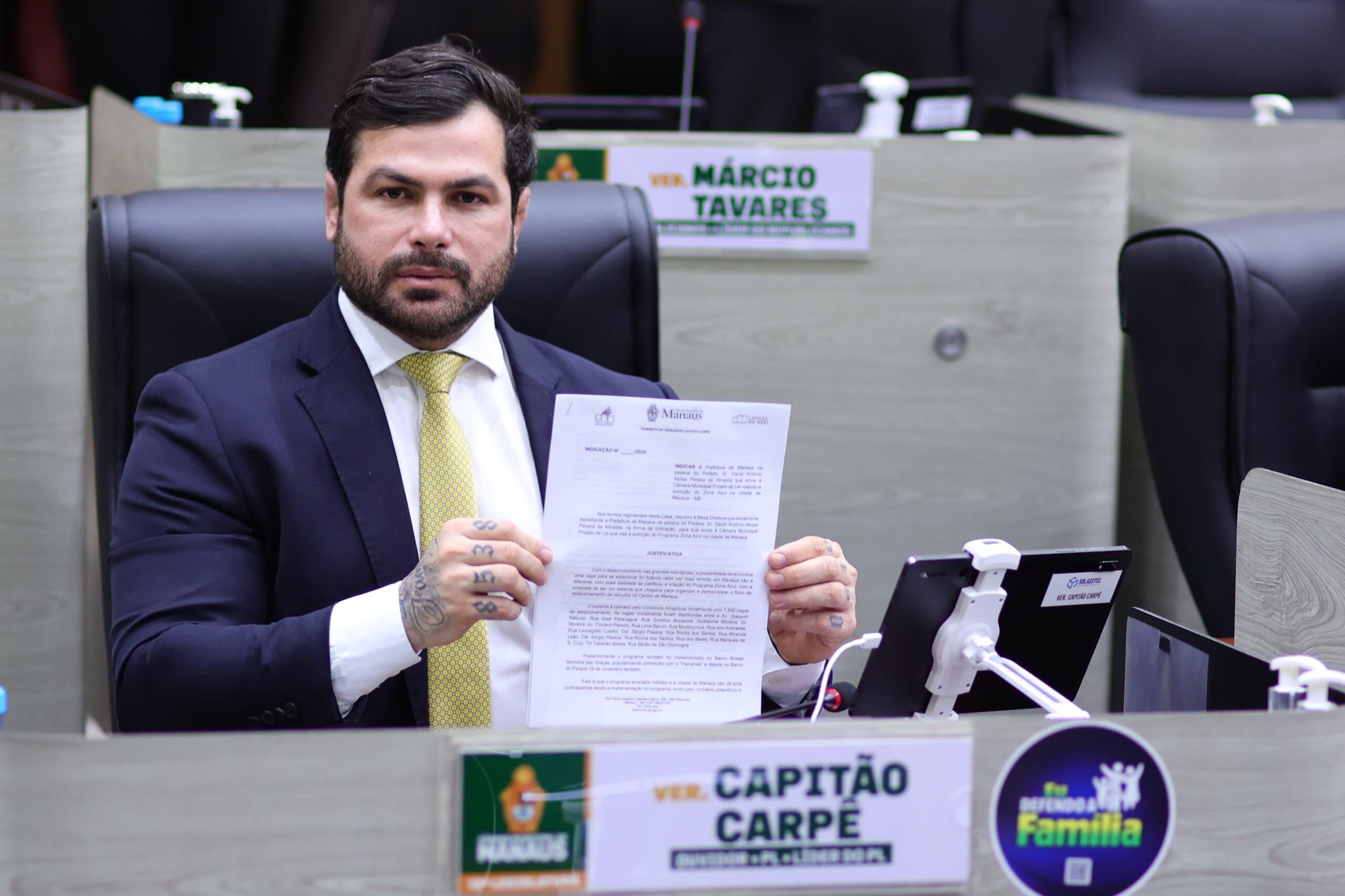 - Manaus (AM) — O vereador Capitão Carpê (PL) protocolou, nesta terça-feira (11), a indicação 274/2024, que solicita que a Prefeitura de Manaus avalie a extinção do serviço ‘Zona Azul’ na capital amazonense.