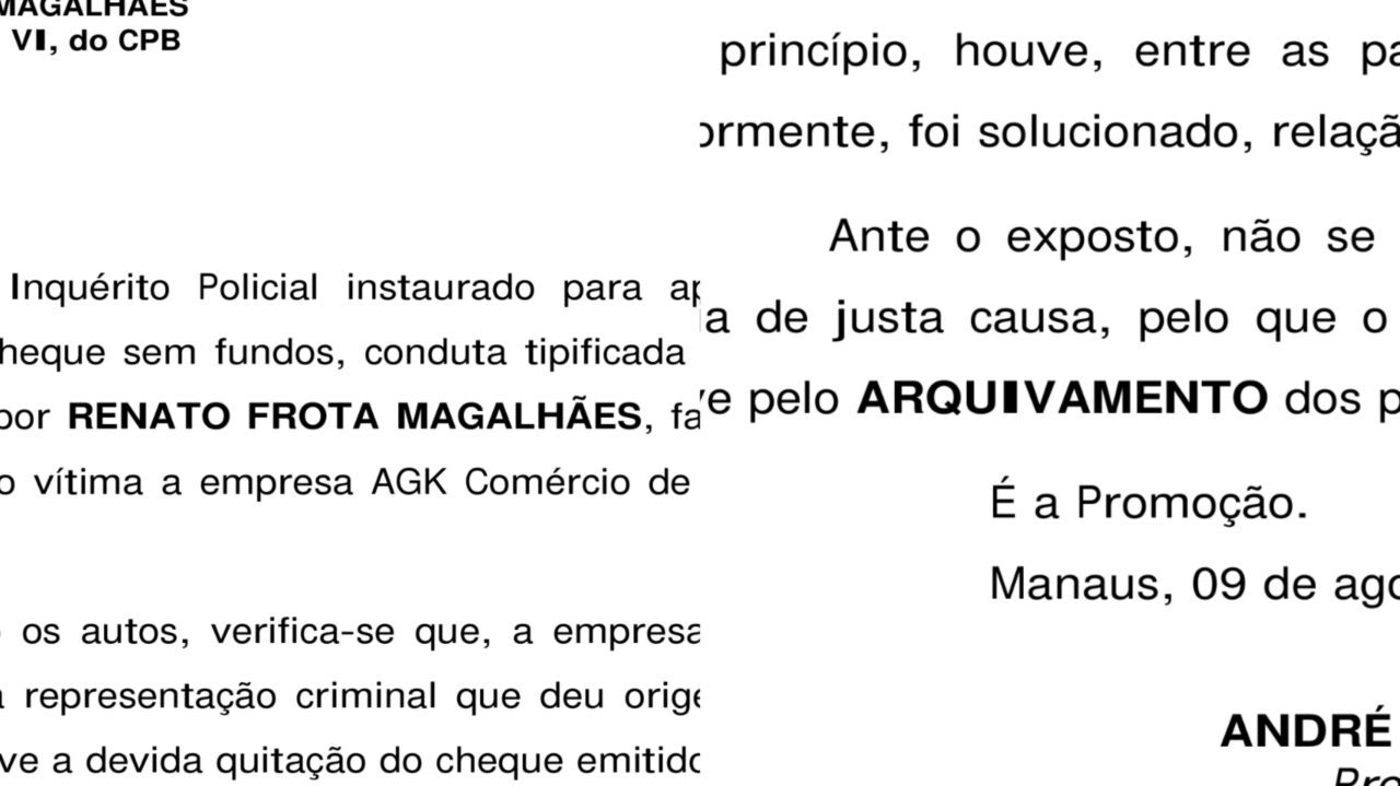 Manaus (AM) — Matérias divulgadas nesta segunda-feira (14/10) acusando o candidato a vice-prefeito Renato Junior (Avante) de “suposto estelionato” esconde propositalmente que o valor foi quitado e ação arquivada há mais de 11 anos, conforme consta em pedido do Ministério Público do Amazonas (MP-AM) acatado pela Justiça. “Ausência de justa causa”, diz o documento.