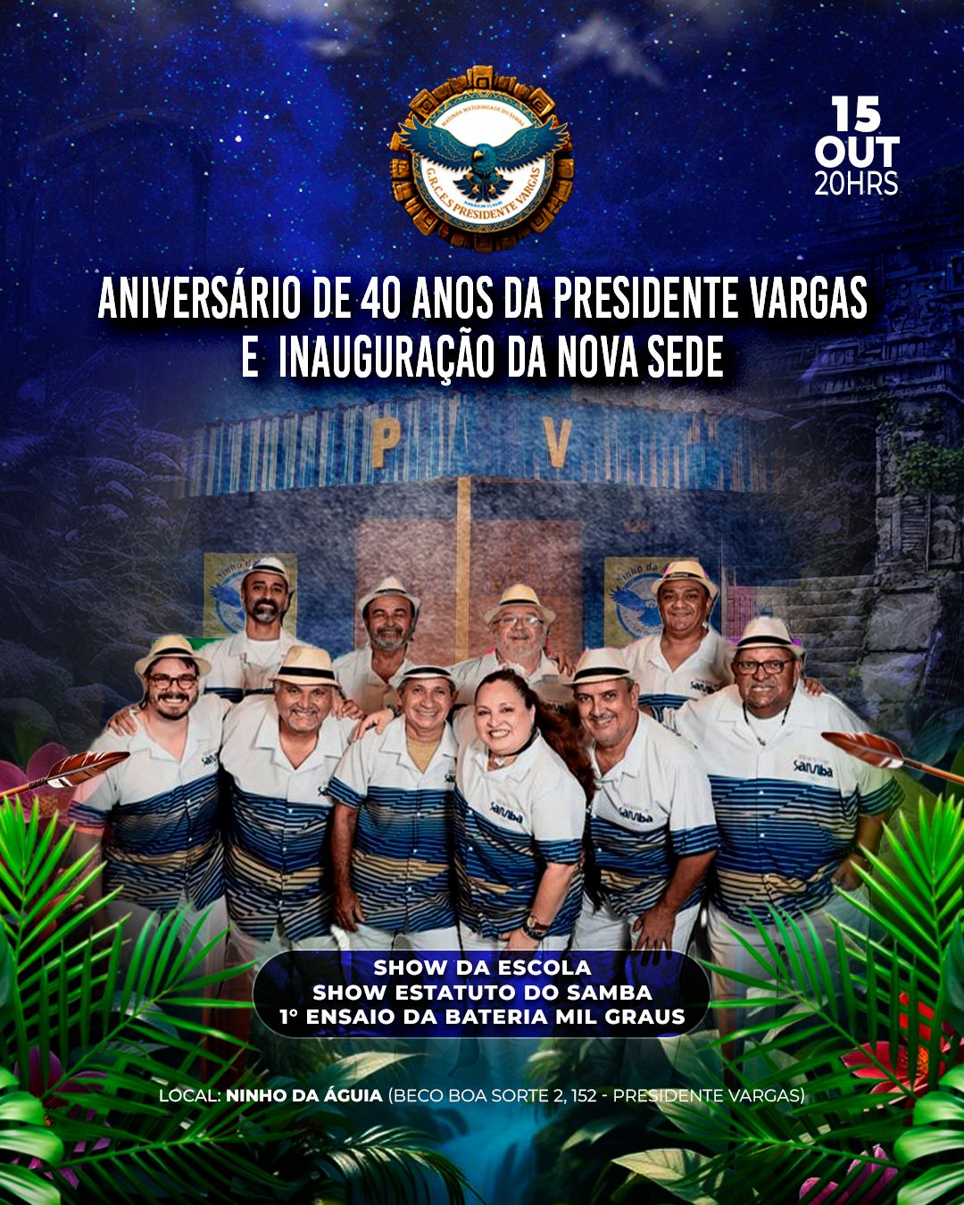 Manaus — É dia de festa para o samba manauara! Na noite do próximo 15 de outubro, a partir das 20h, o Ninho da Águia, localizado no Beco Boa Sorte 2, nº 152, será palco de uma celebração que marcará os 40 anos de fundação do Grêmio Recreativo Escola de Samba Presidente Vargas e a inauguração de sua nova sede.