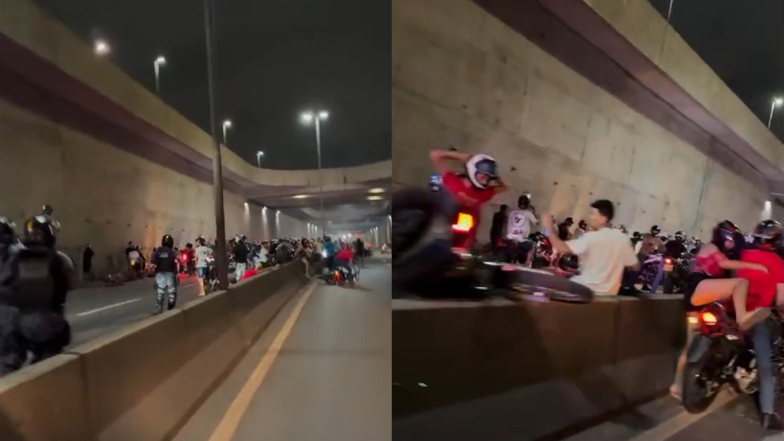 - No momento da abordagem, alguns motociclistas tentaram escapar dirigindo na contramão, enquanto outros chegaram a pular a mureta que divide as pistas, colocando em risco suas vidas e as de outros motoristas.