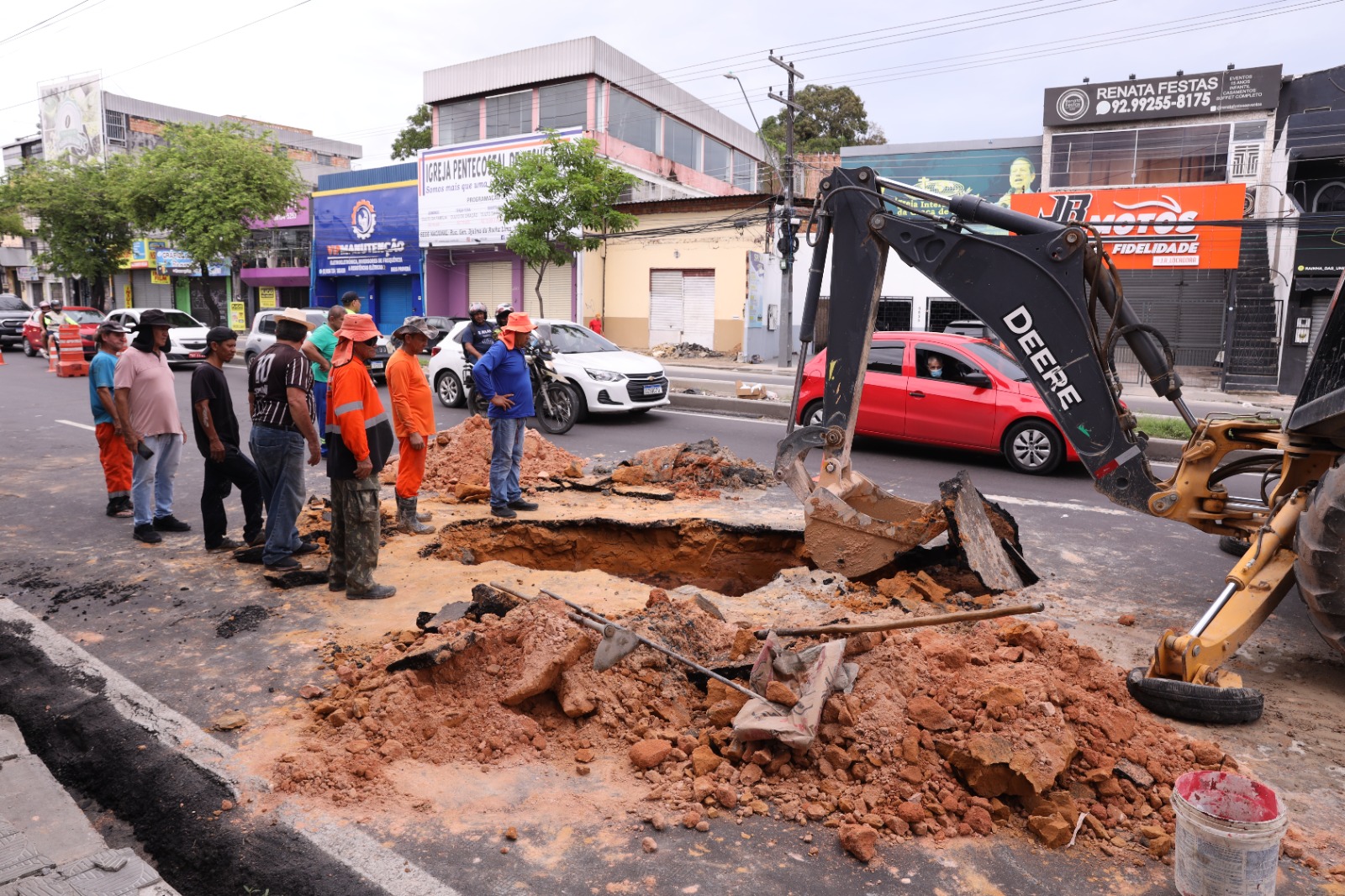 As obras foram acompanhadas pelo prefeito em exercício e secretário de Obras Renato Junior. “No sol ou na chuva, nossas equipes estão na rua para levar a solução e a pronta resposta que a população merece. Sabemos da importância desse corredor viário e estamos trabalhando neste domingo para não impactar no trânsito desta segunda-feira, que é intenso. A determinação do prefeito David Almeida é para atuarmos de forma imediata, em cinco horas de trabalho a obra foi executada e a via liberada”, assegurou.